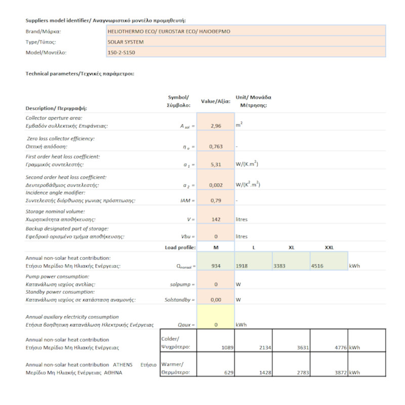 Solar Water Heater HELIOTHERMO 150lt Dual Energy 150-2-S150