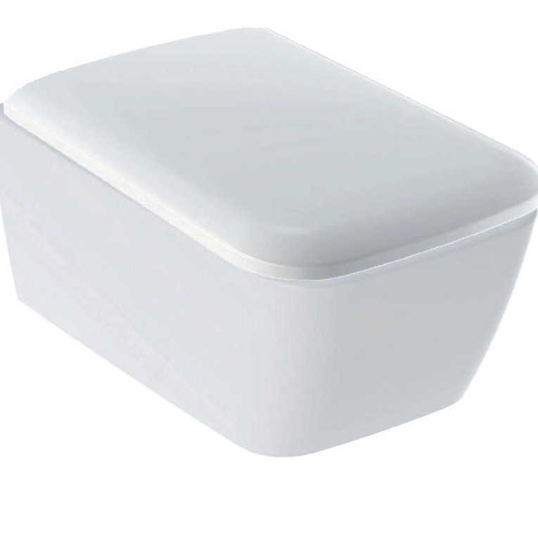 Λεκάνη κρεμαστή iCon Square rimless λευκή και κάθισμα και κάλυμμα λεκάνης Icon σε τεράγωνο σχεδιασμό, με σύστημα ελεγχόμενης κλίσης soft closing από την Geberit