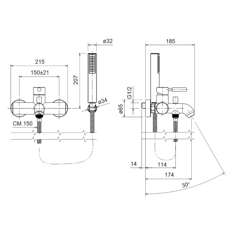 Μπαταρία λουτρού θερμομικτική NEW TECH με τηλέφωνο anticalcare, επίτοιχο στήριγμα τηλεφώνου & άθραυστο σπιράλ 1,5m, σε φινίρισμα Antique Brass LA TORRE Ιταλίας